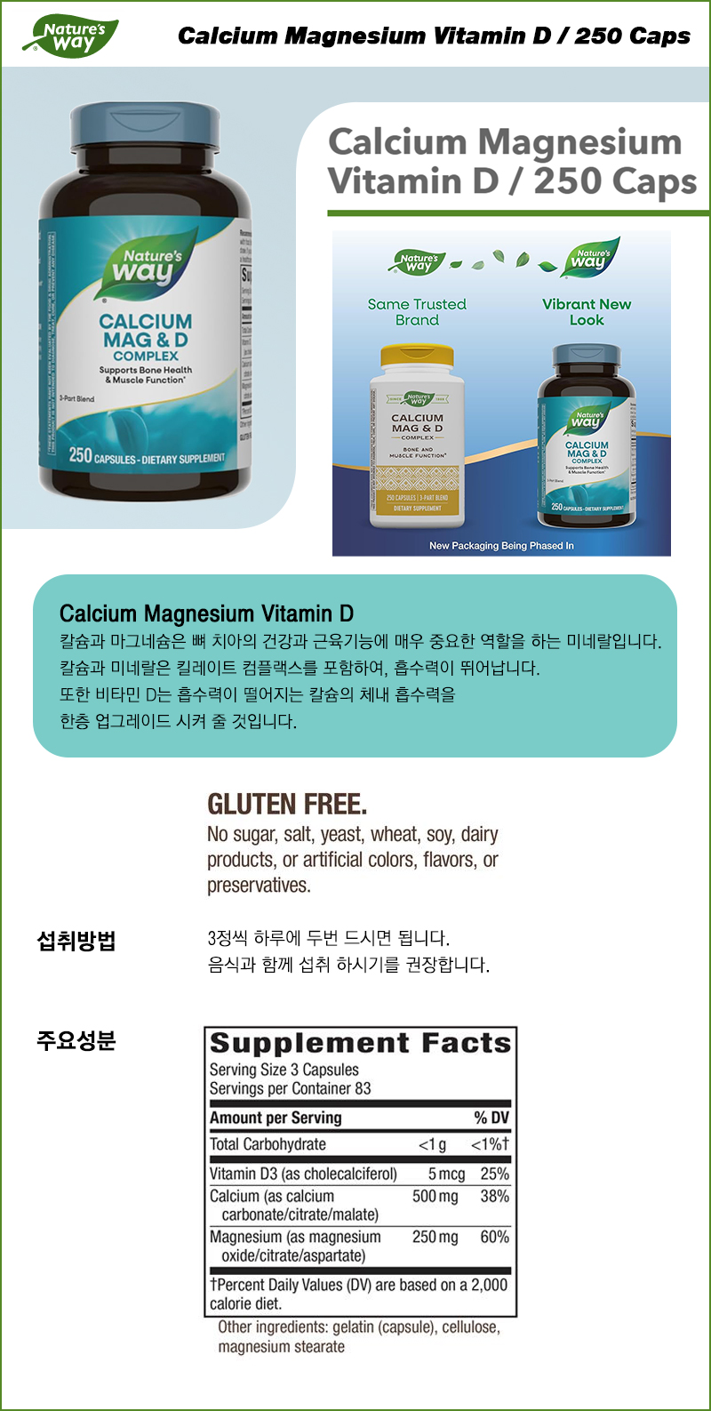 Natures Way/ Calcium Magnesium Vitamin D 250 Caps '뼈 건강과 근육 기능을 한 번에 관리'