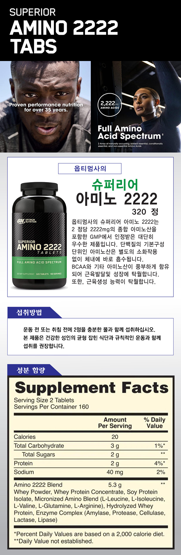 (헬코슈퍼세일)Optimum/ Superior Amino 2222 320 Tabs '근육 회복과 퍼포먼스를 극대화'