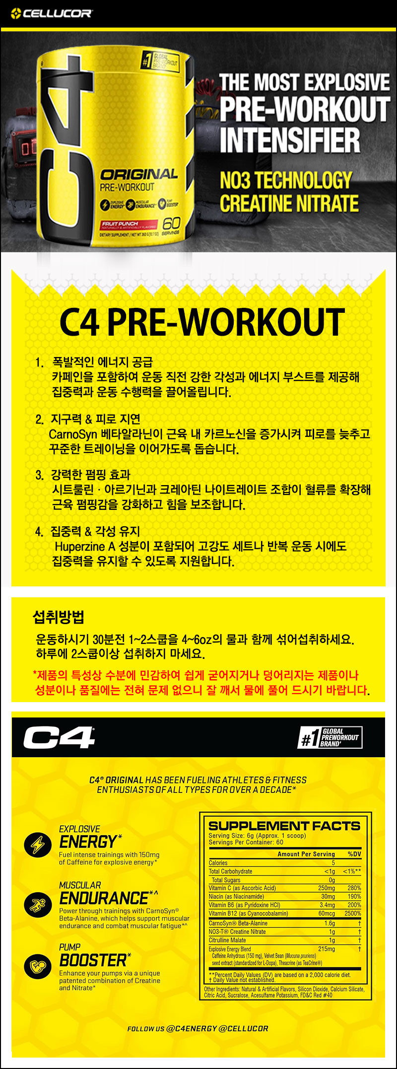 *Cellucor/ C4 Pre-Workout 60 serv 'C4 프리 워크 아웃 60서빙'